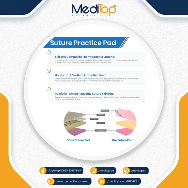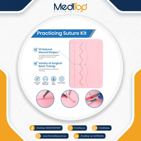 Take your surgical skills to the next level with the MEDITOP Suture Practice Kit, specially crafted for medical and veterinary students seeking to perfect their knot-tying and suturing techniques. The kit includes a premium-quality gynecology silicone pad with realistic tissue simulation and built-in horizontal and vertical mesh layers for enhanced durability.