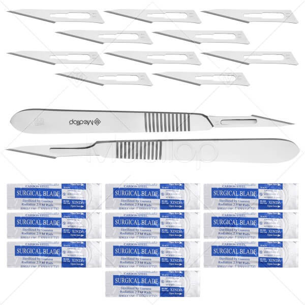 Professional Scalpel Kit – Stainless Steel Handle #3 with 10 Sterile Carbon Steel #11 Blades