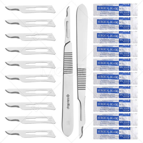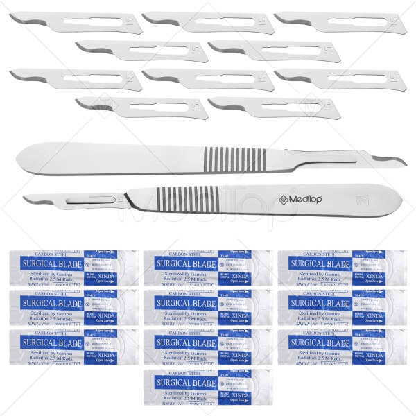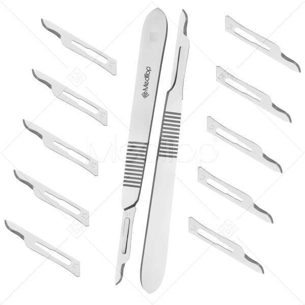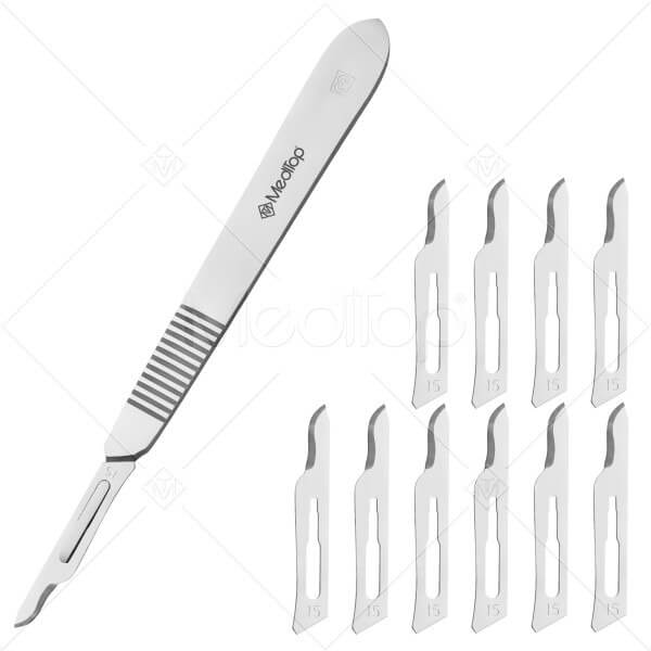 Scalpel Handle No. 3 with 10x #15 Blades – Surgical Stainless Steel Handle & Sterile Carbon Steel Blades